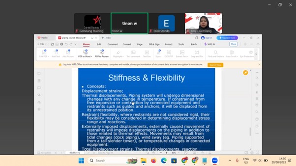 TRAINING PRINCIPLES OF PIPING COMPONENTS Deskripsi Menurut ASME B31 – Code for Pressure Piping, kegagalan sistem perpipaan di industri proses sebagian besar disebabkan oleh kesalahan pemilihan, pemasangan, dan pemahaman fungsi komponen pipa, seperti valve, fitting, dan flange. Fakta ini menunjukkan bahwa pemahaman prinsip dasar komponen piping merupakan aspek krusial untuk menjamin keselamatan, keandalan, dan efisiensi […]