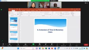 Pada tanggal 13 dan 14 Juni 2024, sebuah pelatihan Kontrak Konstruksi FIDIC yang sangat interaktif diadakan melalui platform Zoom Meeting. Acara ini dirancang untuk memberikan pemahaman mendalam kepada peserta mengenai bagaimana kontrak FIDIC bisa dilakukan tepat dan penerapannya pada project kerja yang akan dilaksanakan oleh peserta. Meskipun dilakukan secara daring, pelatihan ini tetap eksklusif dengan jumlah peserta yang terbatas. Keputusan ini memberikan kesempatan bagi instruktur dan peserta untuk berinteraksi secara mendalam, memastikan bahwa setiap pertanyaan dapat dijawab dengan rinci dan setiap aspek dari pelatihan dapat dipahami dengan baik.